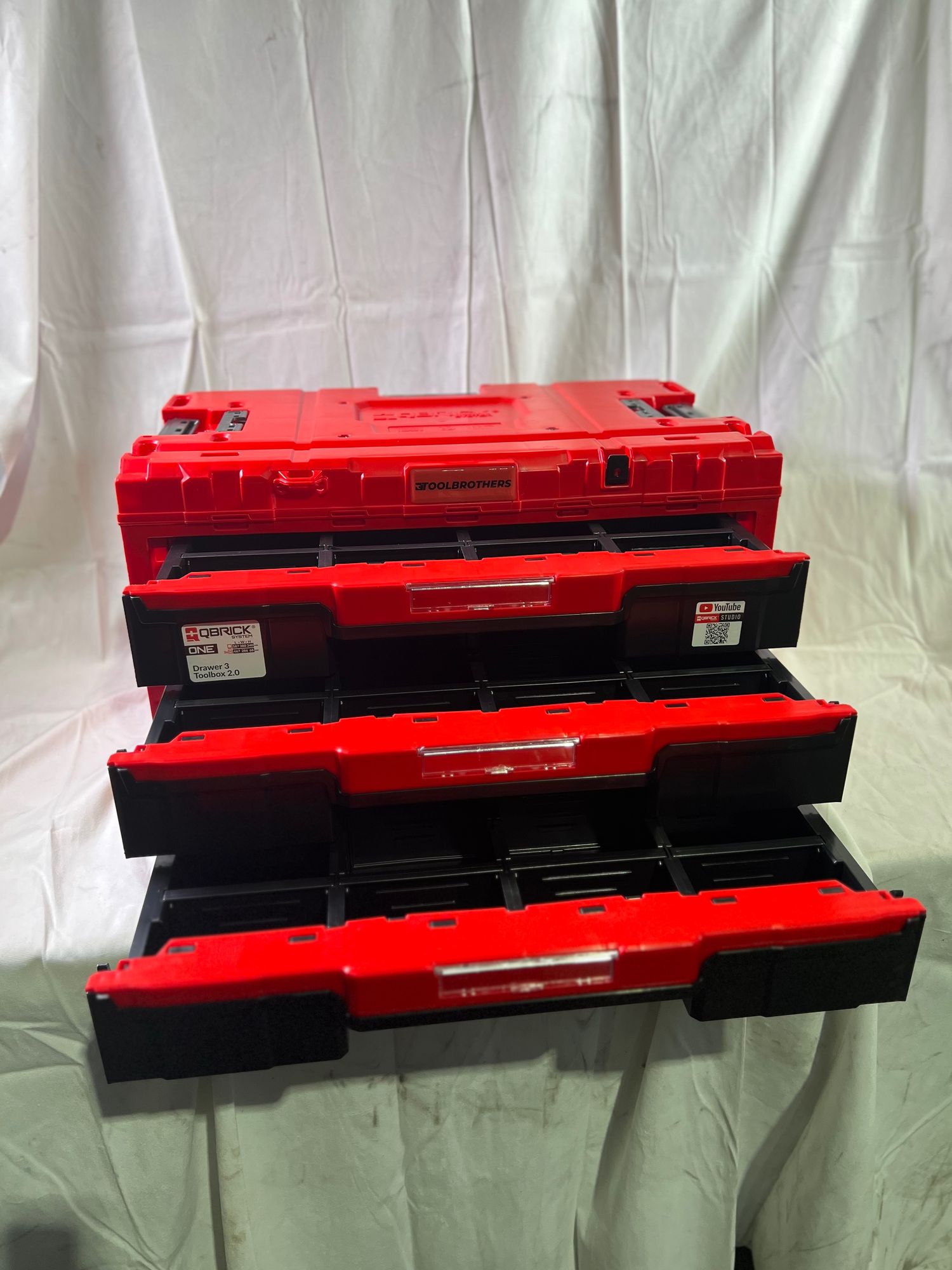 Qbrick System ONE Drawer 3 Toolbox 2.0 Red Ultra HD Werkzeugbox 587 x 380 x 340 mm 27 l mit drei Schubladen - Beschädigt