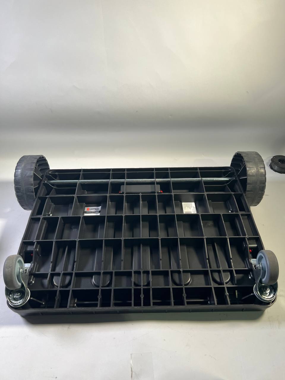 Qbrick System ONE Transport Platform stapelbar 745 x 510 x 180 mm mit Schwenkrädern aus Metall und Bremse - Gebraucht