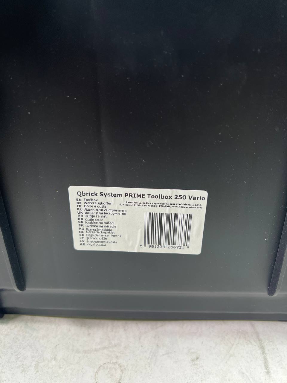 - 1x Qbrick System PRIME Toolbox 250 Vario stackable 535 x 327 x 271 mm 28l IP66 with 3 partitions