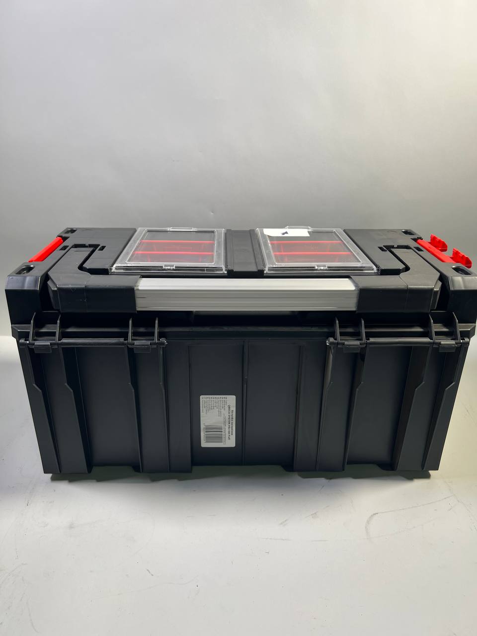 PRO 500 is the smallest representative of a new generation of professional tool cases. The PRO line is characterised by the unique feature in this class of connecting two boxes with polyamide connectors and a flexible seal that ensures complete protection against the ingress of water and dust. The professional lid with two organisers allows you to easily organise small workshop accessories. A solid aluminium handle, polyamide fasteners and side connectors as well as a polycarbonate slider of the organiser guarantee many years of trouble-free operation.