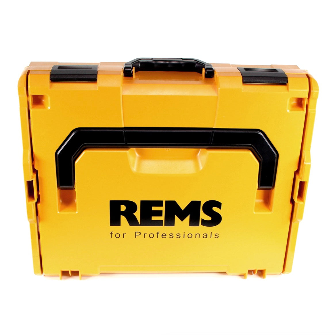The REMS L-Boxx 136 is perfect for transporting and storing various tools. It features an intuitive click system, whereby several boxes can be connected to each other. Besides its handle, the box can also be carried with its recessed handles. The L-Boxx is splash-proof. It fits perfectly with the L-Boxx 136. Up to 11 mini jaws can be perfectly stored in it.