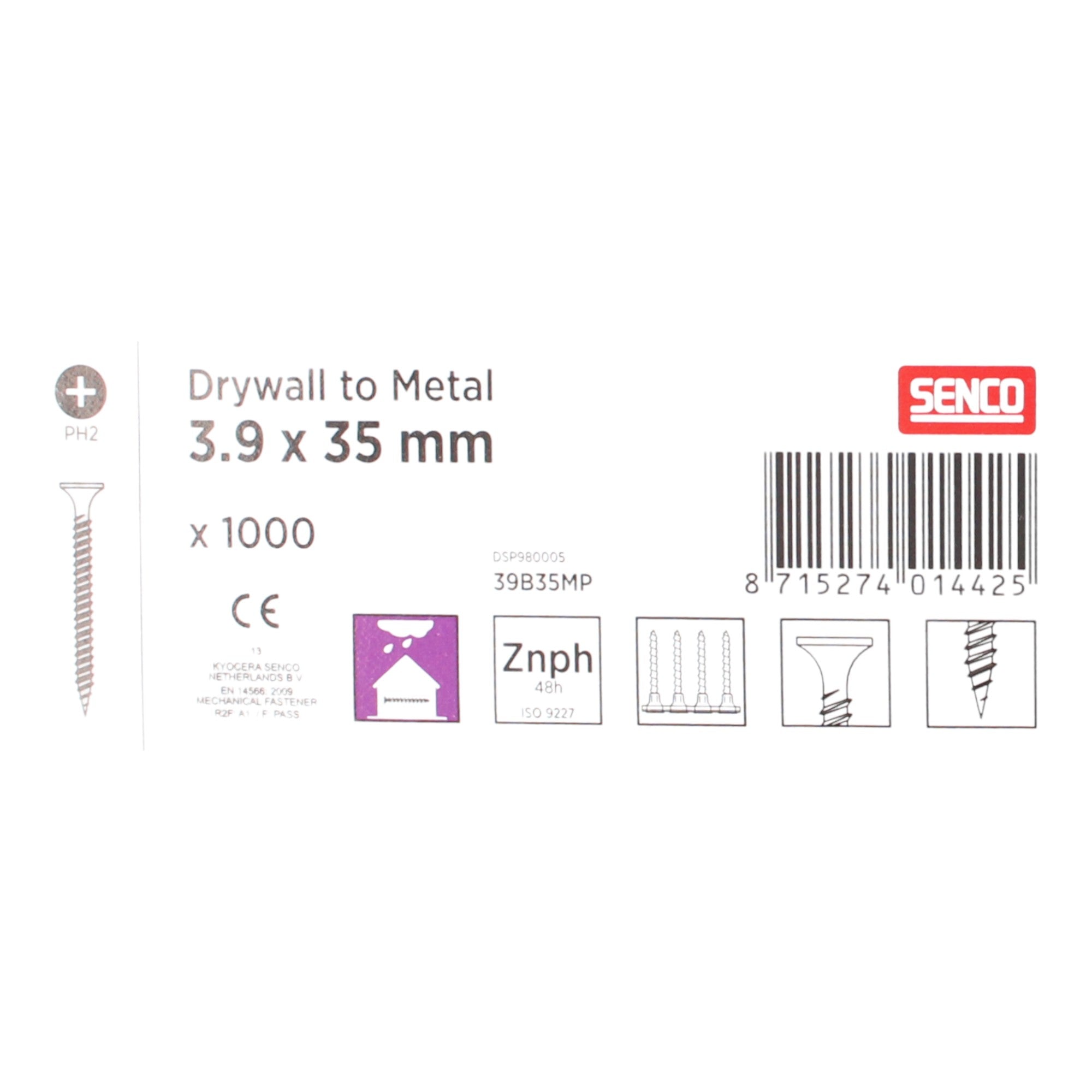 The SENCO plasterboard screws are ideal for use on drywall with light steel. With a diameter of 3.9mm and a length that is perfect for 1mm metal studs, these phosphated screws ensure reliable and stable fixing of plasterboard.