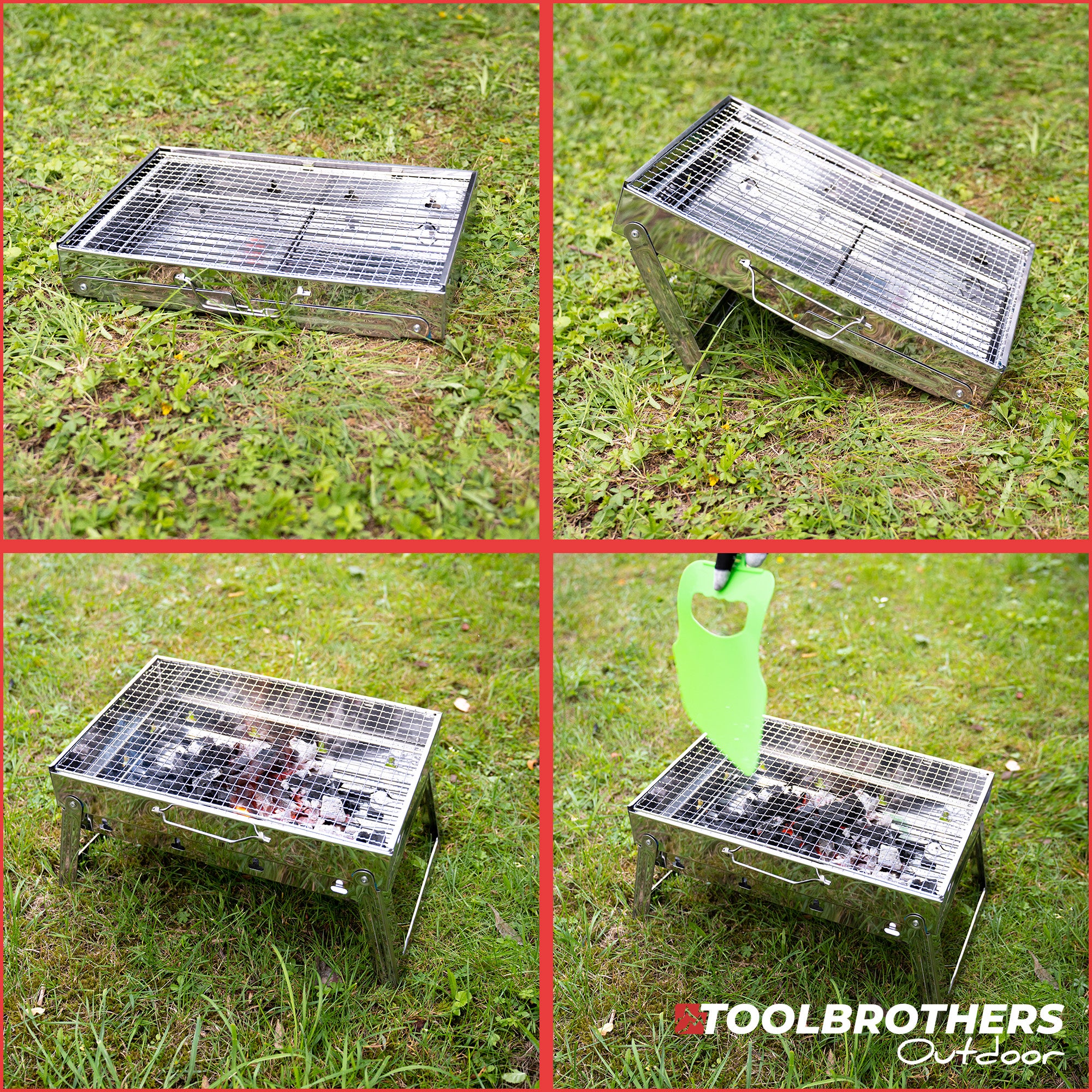 Toolbrothers Outdoor portable charcoal stainless steel barbecue for camping tool-free assembly 43 x 29 x 23 cm Silver Smoker BBQ Pit Grill