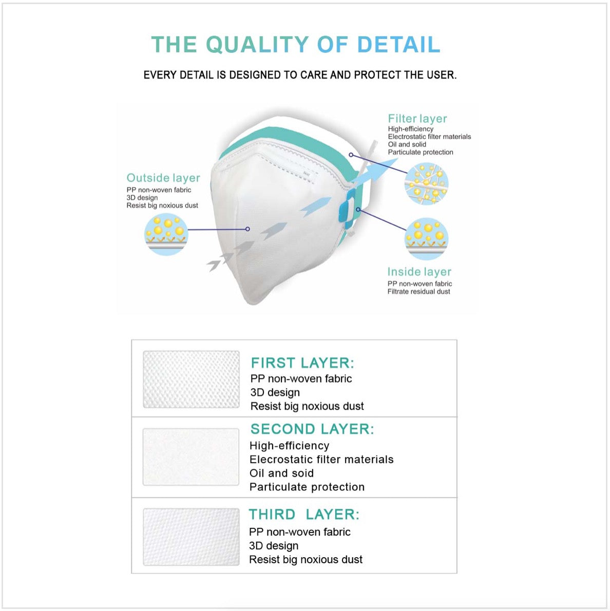 Die VIC Atemschutzmaske besitzt die Schutzklasse FFP2 ( Schutz vor festen und flüssigen gesundheitsschädlichen Stäuben Pneumokoniose / Staublunge, Rauch und Aerosolen ). Die Atemschutzmaske der Schutzklasse FFP2 eignen sich für Umgebungen, in denen sich gesundheitsschädliche und erbgutverändernde Stoffe in der Atemluft befinden. Der flexible Aluminium Nasenbügel lässt einen sanften und komfortablen Tragekomfort zu. Die Masken sind für den privaten Gebrauch, Industrie und Bergbau geeignet. Die Maske besteht aus drei Schichten: Außen ein Polyestervlies gegen groben Staub, mittig eine elektrostatische Filterschicht gegen ölige und nicht-ölige Feinstäube, innen ein dickes Volumenvlies aus Baumwolle gegen Reststäube. Die Gummibänder bestehen aus ökologischen umweltfreundlichen Materialien.
