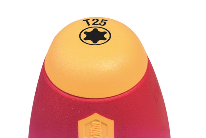 mit SoftFinish® Mehrkomponentengriff · Klinge isoliert · stückgeprüft gemäß IEC 60900 · Klinge aus Chrom-Vanadium-Molybdän-Stahl · Spitze brüniert