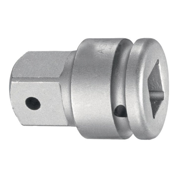 para broca atornilladora eléctrica - accionamiento: 20 mm (3/4 ″) cuadrado DIN 3121 - forma H 20 - con agujero pasador y ranura anular salida: 25,4 mm (1 ″) cuadrado DIN 3121 con agujero pasante - de acero especial - superficie acero gris - engrasado - para las más duras exigencias en llaves de impacto eléctricas y/o neumáticas