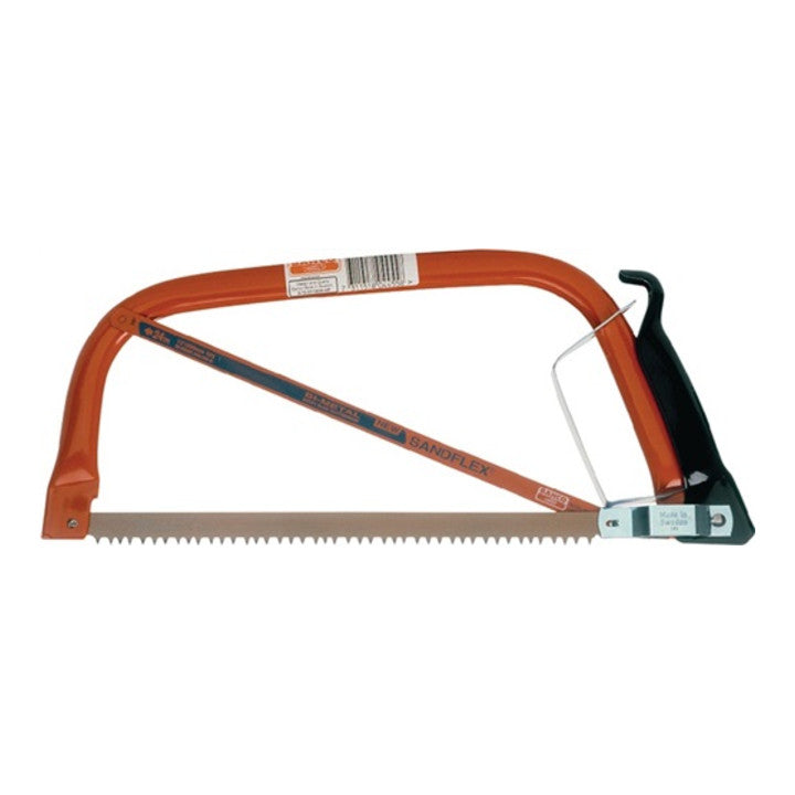 bastidor ovalado de tubo de acero robusto - con hoja de sierra (diente puntiagudo) para madera y hoja de sierra bimetálica Sandflex para metal y plástico - con protector de dientes de plástico, protector de nudillos y palanca de sujeción
