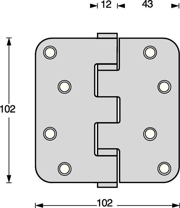 - Longitud de la bisagra: 102 mm