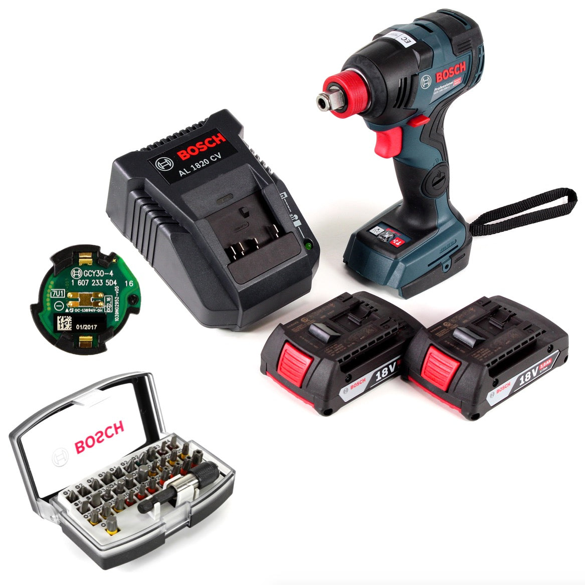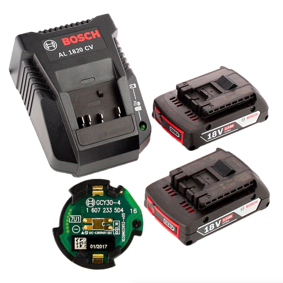 - 2 baterías de iones de litio Bosch GBA de 18 V y 2,0 Ah