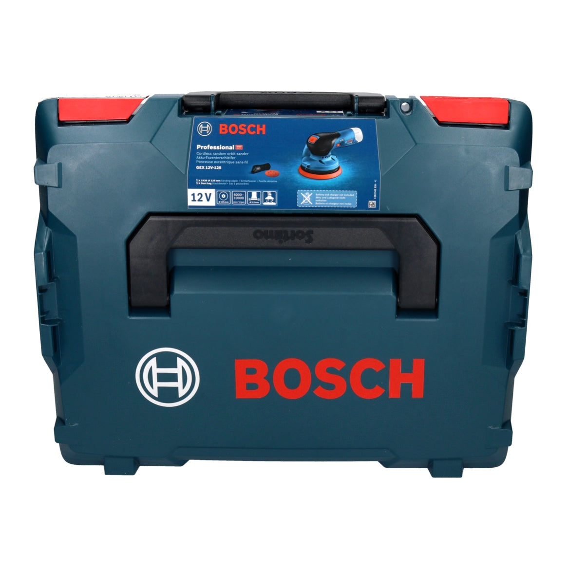 Bosch GEX 12V-125 Lijadora rotorbital profesional sin cable 12 V 125 mm sin escobillas + 2x acumulador 6,0 Ah + cargador + L-Boxx