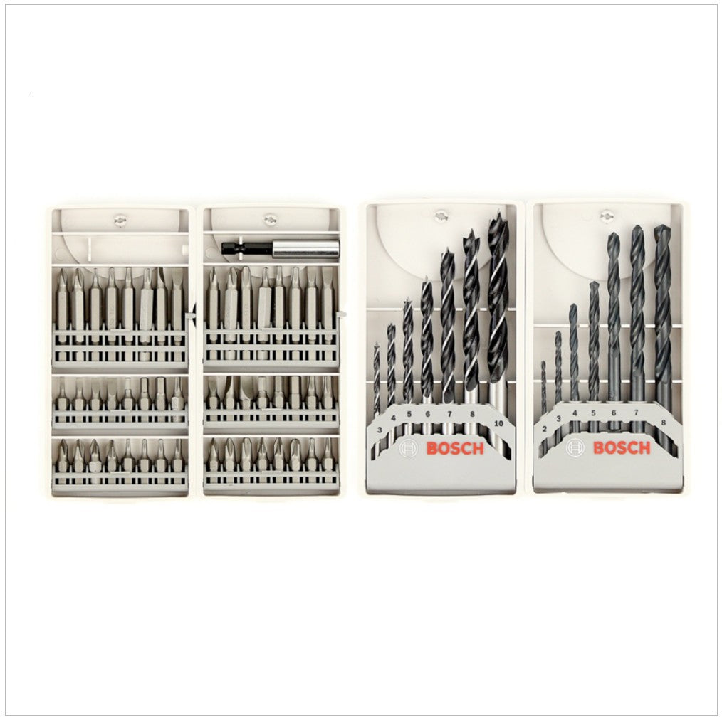 Taladro/destornillador a batería Bosch GSR 1800-Li 18 V en maletín con 2 baterías de 1,5 Ah, cargador, 63 piezas de brocas y juego de brocas