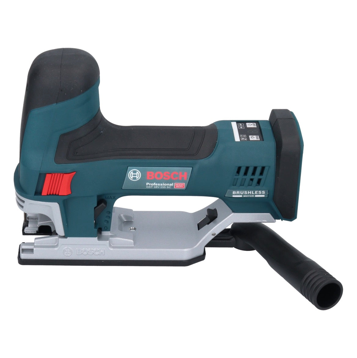 La GST 18V-155 SC Professional cuenta con un motor sin escobillas y un diseño de herramienta bien equilibrado. Tiene una forma ergonómica que permite un agarre de 360° y un interruptor de doble cara que garantiza un manejo y control perfectos para usuarios diestros y zurdos al serrar, incluso boca abajo. Su guía de la hoja de sierra evita que ésta se doble incluso en pequeñas curvas y permite un trabajo preciso. Es compatible con un sistema externo de aspiración de polvo. También dispone de una palanca de expulsión de la hoja de sierra de gran tamaño y de la función Drop Control, que garantizan una mejor protección de la salud y una mayor seguridad para el usuario. La sierra de calar es ideal para cortes redondos y transversales en madera maciza, aglomerado y compuestos de madera, así como en materiales más gruesos o duros. Es compatible con carriles guía a través de un adaptador y, por supuesto, con todas las baterías y cargadores Bosch Professional de 18 V. Además, dispone de una robusta placa base de aluminio fundido a presión con dos puntos de fijación para una mayor estabilidad y seguridad. El Adaptive Speed Control ( ASC ) favorece una alta precisión al iniciar el corte, mientras que el Connectivity Module permite ajustar individualmente la velocidad y la iluminación y proporciona información importante sobre la herramienta. Bosch es un fabricante sinónimo de alta calidad y un gran sistema de acumuladores.