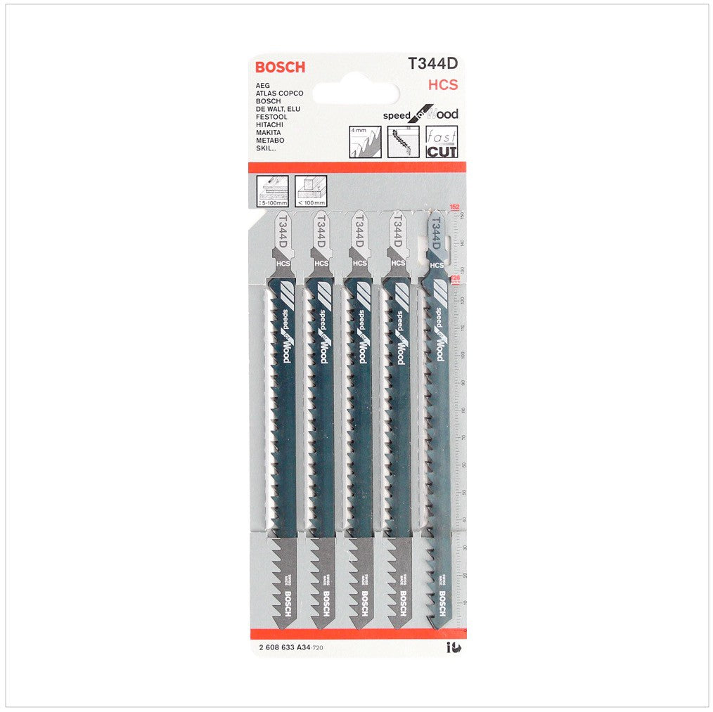 Hojas de sierra de calar Bosch T 344 D Speed ​​para madera 5 piezas 152 mm (2608633A34)
