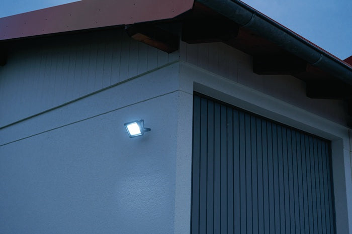 con LEDs Everlight SMD muy luminosos - vida útil extremadamente larga - resistente a los golpes - sin mantenimiento - baja generación de calor - art. núm. 8000 883 111 como proyector LED para exteriores con detector de movimiento - ideal para iluminar automáticamente zonas de entrada, entradas o cocheras, así como para disuadir de robos y hurtos - detector de movimiento orientable horizontal y verticalmente