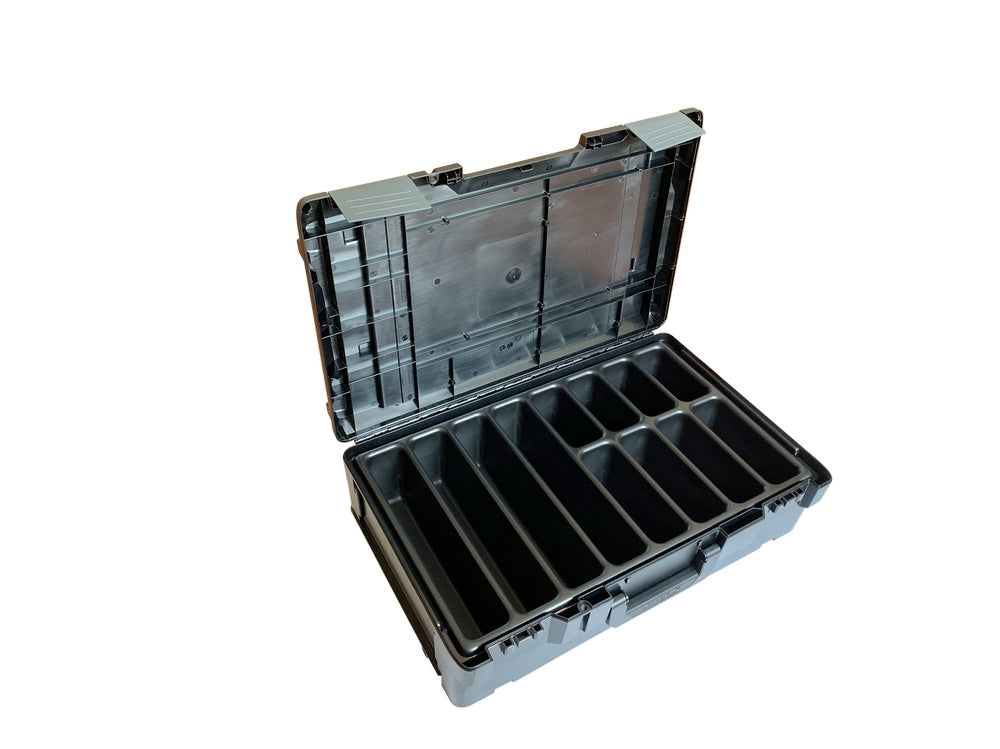 La bandeja para piezas pequeñas XLB con 12 compartimentos está fabricada en robusto plástico termoformado y es ideal para una compartimentación rentable de la XL-BOXX. Con sus 12 compartimentos, ofrece un amplio espacio para piezas pequeñas, consumibles y surtidos. En combinación con el inserto de tapa XLB, también garantiza un transporte sin problemas. El inserto mantiene las piezas pequeñas ordenadas y siempre a mano.