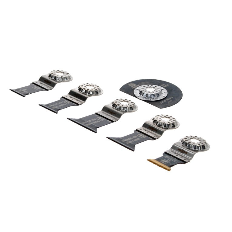 Este juego de hojas de sierra ha sido desarrollado especialmente para trabajar metales endurecidos y no endurecidos. Las hojas de sierra E-Cut Long-Life en varios anchos de corte son ideales para metal y madera con clavos de hasta 4 mm. Gracias a la larga vida útil y la calidad del corte, el trabajo avanza rápidamente. Las hojas de sierra universales son ideales para perfiles de aluminio, tubos de cobre, madera, placas de yeso, plásticos y chapas de hasta 2 mm. El bimetal con dentado universal ondulado y forma cónica garantiza un rápido avance del trabajo y una buena evacuación de viruta. Gracias al soporte Starlock, las hojas de sierra son adecuadas para todos los osciladores habituales de diferentes fabricantes.