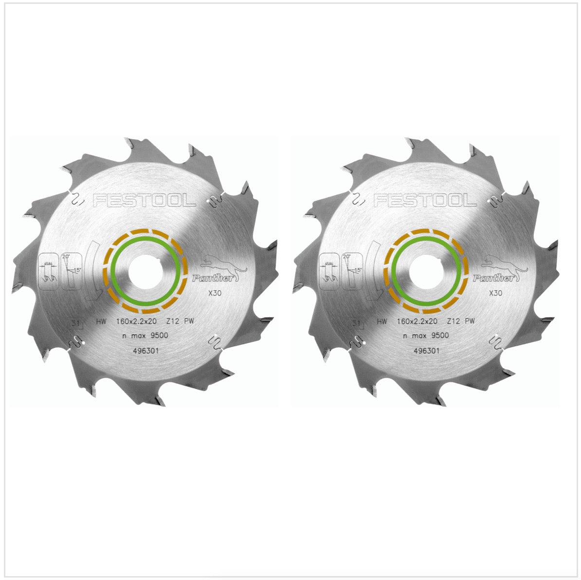 Festool 2x Hoja de sierra Panther 160 x 20 x 2,2 mm PW12 ( 2x 496301 )