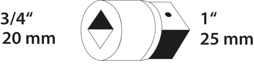 Accionamiento cuadrado de 20 mm (3/4″) - para vasos de accionamiento manual - con bloqueo de pasador - acero al vanadio - cromado - moleteado Accionamiento cuadrado interior de 20 mm (3/4″) a accionamiento cuadrado exterior de 25 mm (1″) - DIN 3123 / ISO 3316