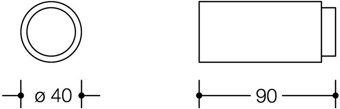 de poliamida - diámetro 40 mm - 90 mm de longitud con tope elástico negro accionado por resorte - protegido contra robo gracias a la atornilladura oculta