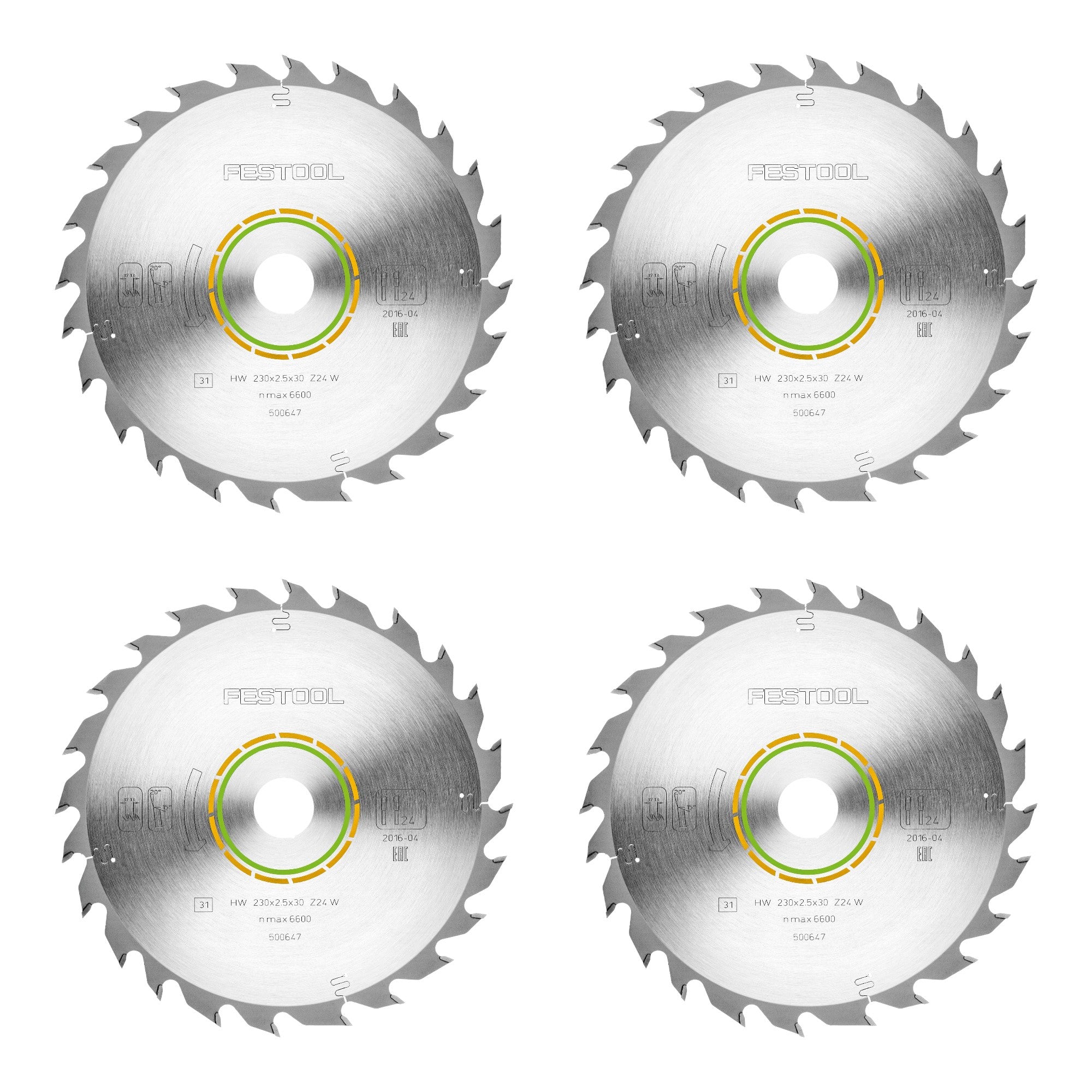 Hoja de sierra circular Festool HW 230x2,5x30 W24 WOOD STANDARD 4 piezas ( 4x 500647 ) 230 x 2,5 x 30 mm 24 dientes para todos los materiales derivados de la madera, tableros de materiales de construcción, plásticos blandos, corte basto
