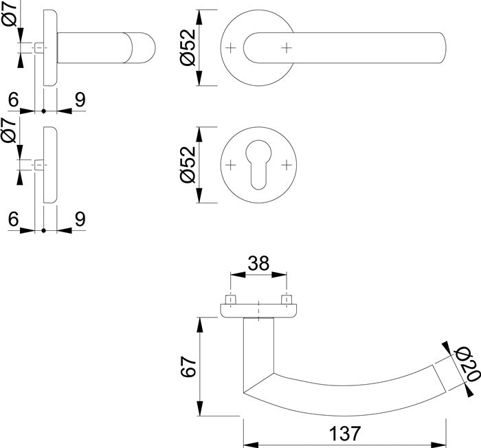 HOPPE Juego de escudos Narvik E1430ZP/17KV/17KVS Acero inoxidable F69 ( 3000252276 )
