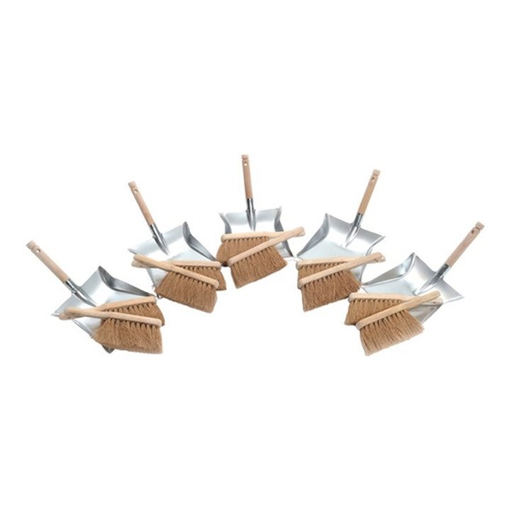 - - 10 x cepillo de mano coco L 290 mm con dorso de madera natural - 5 recogedores, galvanizados con mango de madera Tamaño de la hoja L 230 x A 260 mm