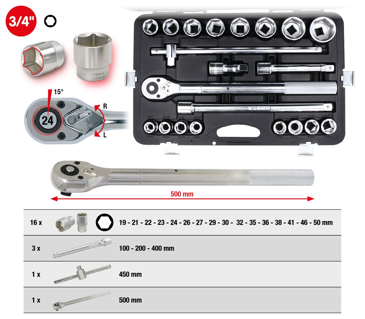 KS TOOLS 3/4' Juego de llaves de vaso 21 pzs ( 911.0721 )