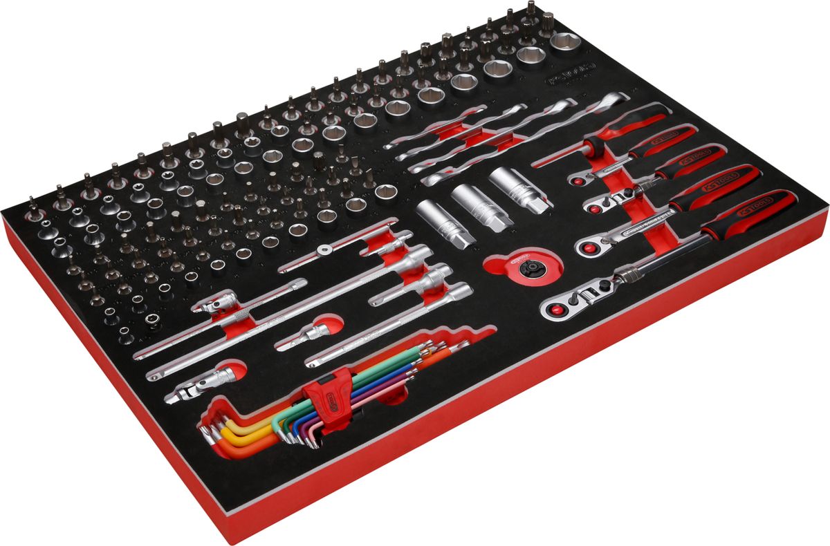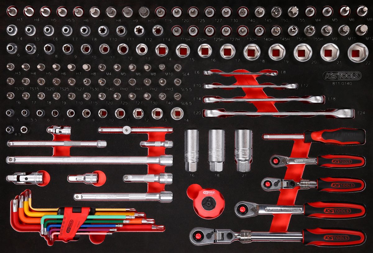KS TOOLS Juego de llaves de vaso de 1/4' + 3/8' en inserto de gomaespuma, 140 pzs ( 811.0140 )