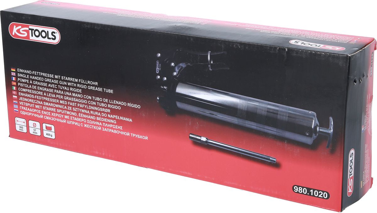 KS TOOLS Pistola de engrasar para manipular con una sola mano con tubo de relleno rígido, 350mm ( 980.1020 )