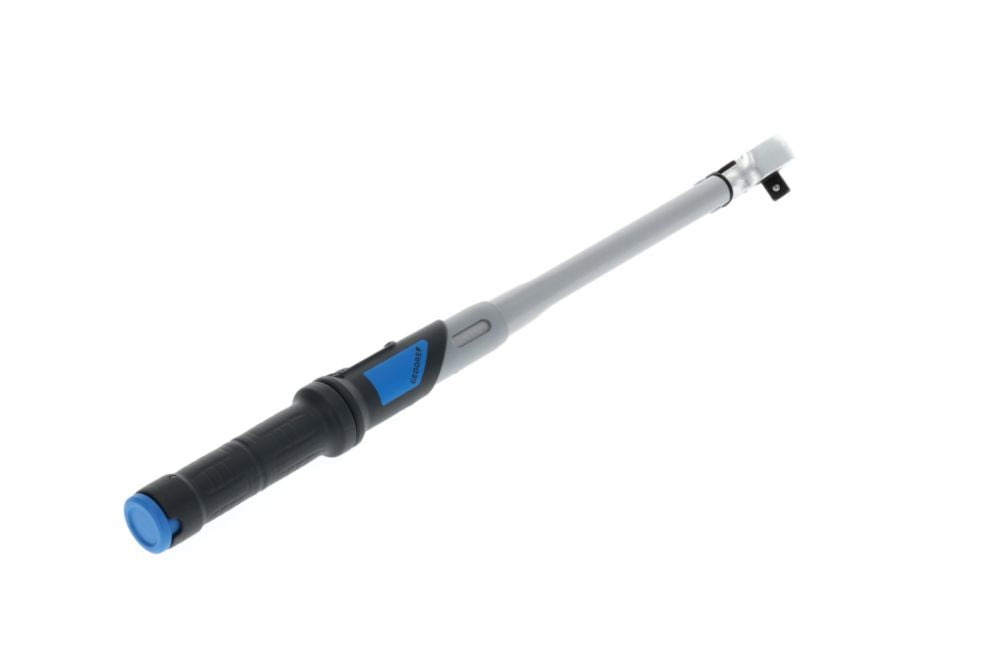 para el apriete controlado de tornillos - carraca integrada - rango de trabajo ajustable - construcción robusta de tubo de acero pintado, con carraca galvanizada y piezas de plástico de alta calidad - señal de desbloqueo táctil y acústica - clasificado según DIN EN ISO 6789:2003 Tipo II Clase A* - precisión de desbloqueo +/- 3 % del valor de escala ajustado - empuñadura ergonómica de plástico de 2 componentes con ayuda de calibración - conmutación entre escala principal N.m y escala secundaria lbf.ft. - con escala micrométrica para la escala principal N.m para el ajuste de valores de escala intermedios - sistema ergonómico para el ajuste del par de apriete con símbolo de información - opción de ajuste rápido - sistema de ajuste asegurado Versión: con carraca de cambio de palanca para un apriete controlado en el sentido de las agujas del reloj * Con certificado de fábrica trazable. Calibrado con una desviación admisible de +/- 3 % y mejor. La especificación estándar (+/- 4 %) se supera para su seguridad