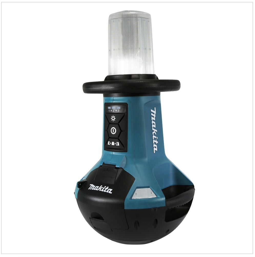 La DML 810 de Makita es una luz LED de superficie autoalineable que puede funcionar con baterías o con alimentación de red. Cuenta con un diseño autoalineable, por lo que se endereza sola si se cae. La luz de superficie se puede encender en 3 intensidades diferentes: 5500 / 3000 / 1500 lúmenes. Además, se puede ajustar la orientación en 360°, 180° a la izquierda y 180° a la derecha. Otra característica es su construcción resistente al polvo y al agua, lo que permite su uso en condiciones de obra. Las prácticas asas de transporte garantizan un manejo sencillo. Makita es un fabricante líder de herramientas eléctricas que se caracteriza por su amplia gama de productos de 18 V y su alta calidad de fabricación.