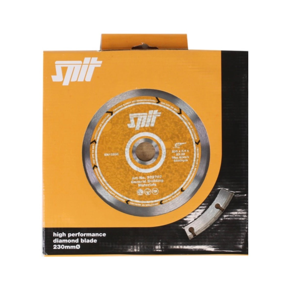 El disco de corte Spit Wet and Dry es un disco de corte de diamante robusto que es especialmente adecuado para el corte de hormigón y roca dura. El disco de corte tiene un diámetro de 230 mm y puede utilizarse tanto en seco como en húmedo. El número máximo de revoluciones es de 6.600 rpm. Otros campos de aplicación son los tubos y ladrillos de hierro fundido.