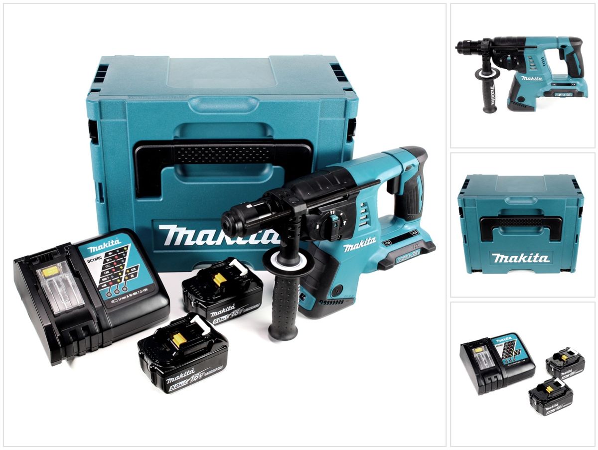 Makita DHR 264 2 x 18 V / 36 V Li-Ion SDS Plus taladro percutor a batería en Makpac 4 con inserto + 2 x batería BL 1850 B 18 V 5,0 Ah Li-Ion + 1 x cargador DC18RC + juego de 5 brocas de metal duro para mampostería y concreto