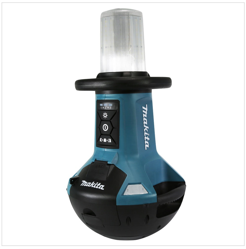 La DML 810 de Makita es una luz LED de superficie autoalineable que puede funcionar con baterías o con alimentación de red. Cuenta con un diseño autoalineable, por lo que se endereza automáticamente si se cae. La luz de superficie se puede encender en 3 intensidades diferentes: 5500 / 3000 / 1500 lúmenes. Además, se puede ajustar la orientación en 360°, 180° a la izquierda y 180° a la derecha. Otra característica es su construcción resistente al polvo y al agua (grado de protección IP54), lo que permite su uso en condiciones de obra. Las prácticas asas de transporte garantizan un manejo sencillo. Makita es un fabricante líder de herramientas eléctricas que se caracteriza por su amplia gama de productos de 18 V y su alta calidad de fabricación.