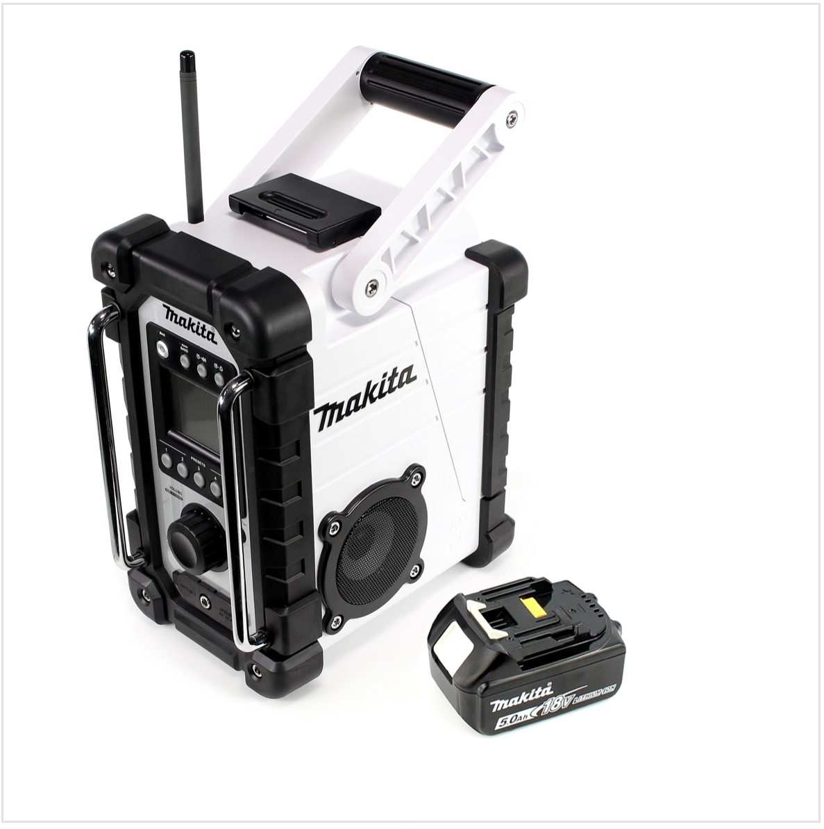 Makita DMR 107 ZW Radio a batería 7,2 - 18 V / Color blanco + 1x Batería BL 1850 B 5,0 Ah - Sin cargador incluido