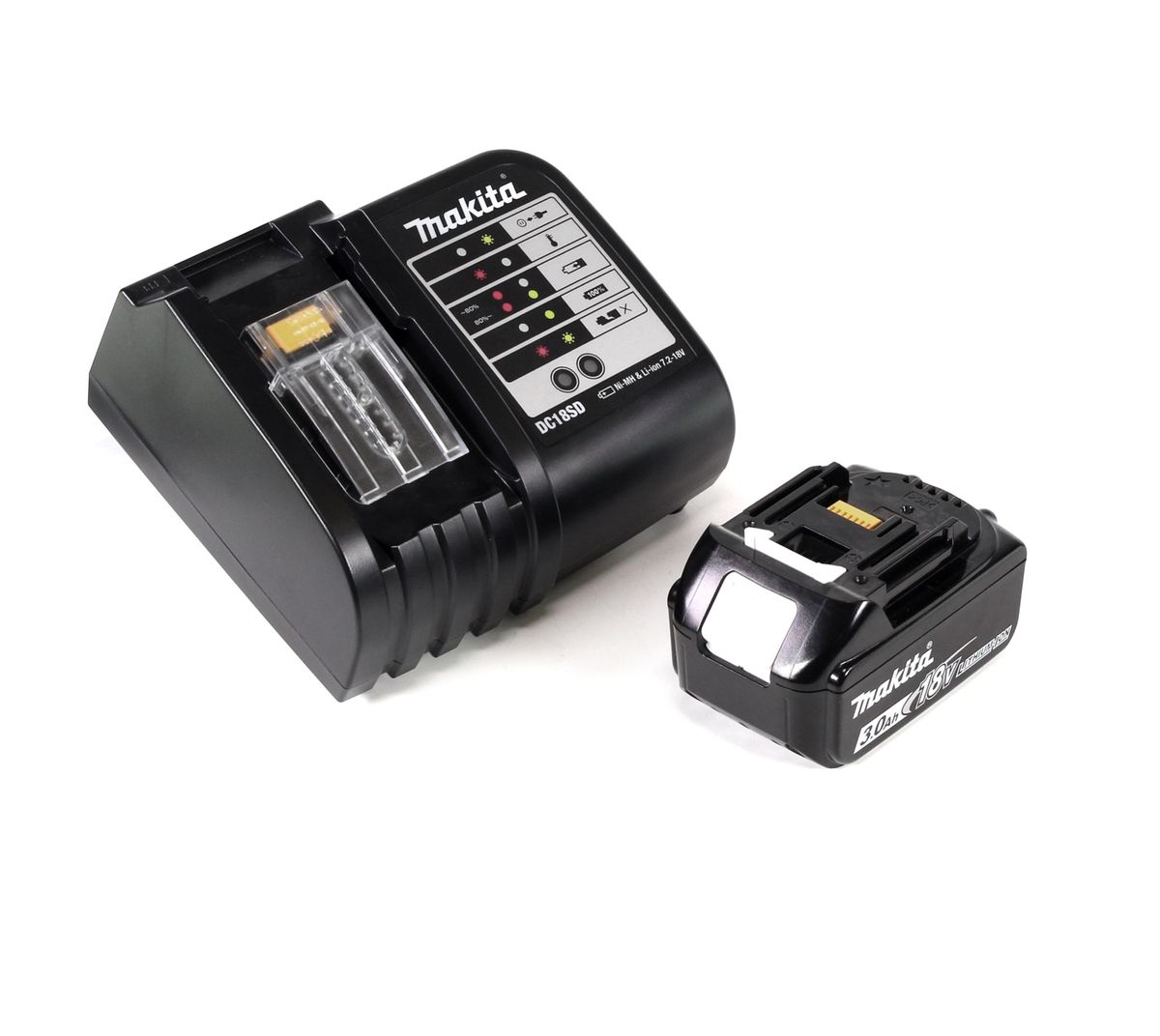 - 1x batería Makita BL1830B de 3,0 Ah (196399-0)