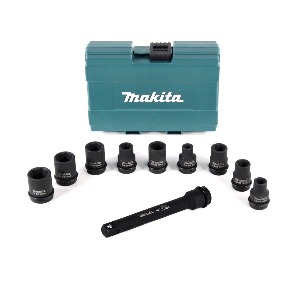 Makita DTW 450 RT1 18V llave de impacto a batería 1/2" 440Nm 18V + 1x batería 5.0Ah + cargador rápido + juego de llaves de vaso 9 piezas + alargador 150mm - sin estuche