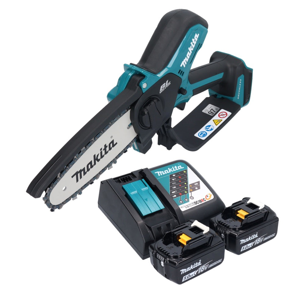 Makita DUC 150 RT201 Motosierra sin cable 18 V 15 cm sin escobillas + 2x batería 5,0 Ah + cargador