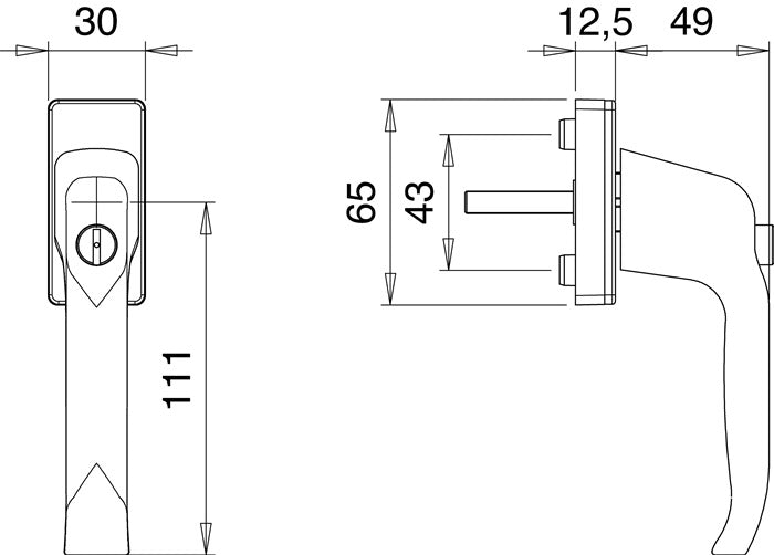 bloqueable - con cilindro de empuje y 1 llave (siempre con llaves iguales) - con carraca - leva Ø 10 mm - husillo cuadrado de 7 mm