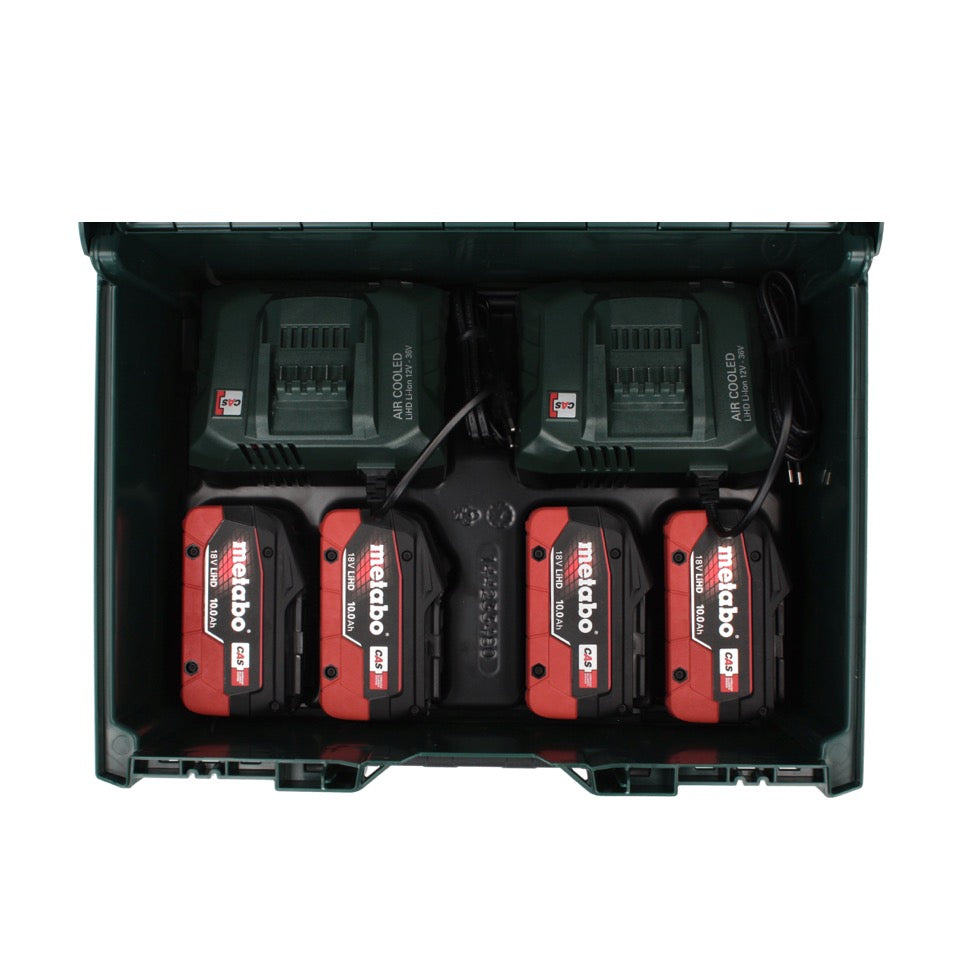 Set básico Metabo 18 V LiHD + 4x baterías 4,0 Ah + 2x cargador ASC 55 + metaBOX