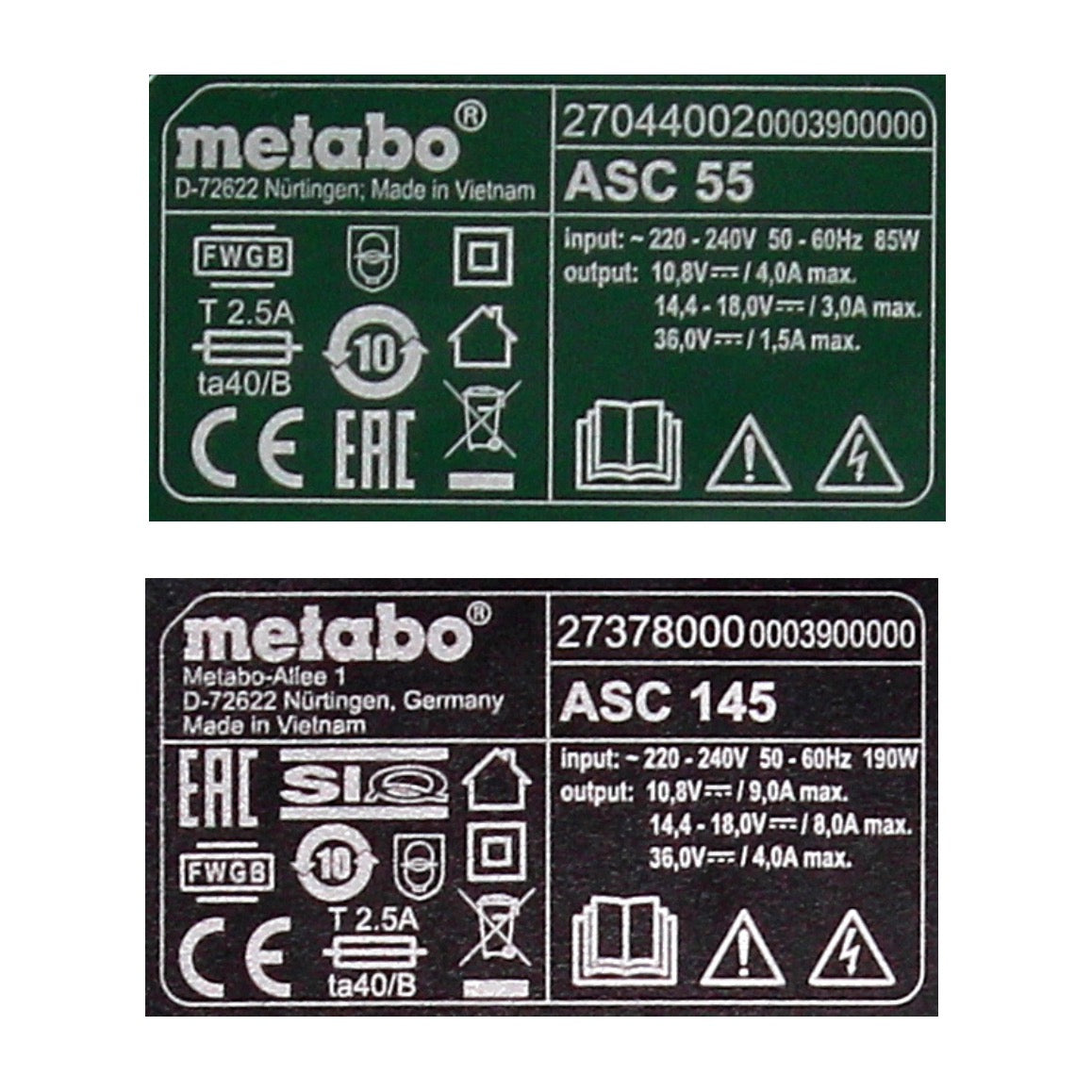 - 1x Cargador Metabo ASC 145 (627378000)