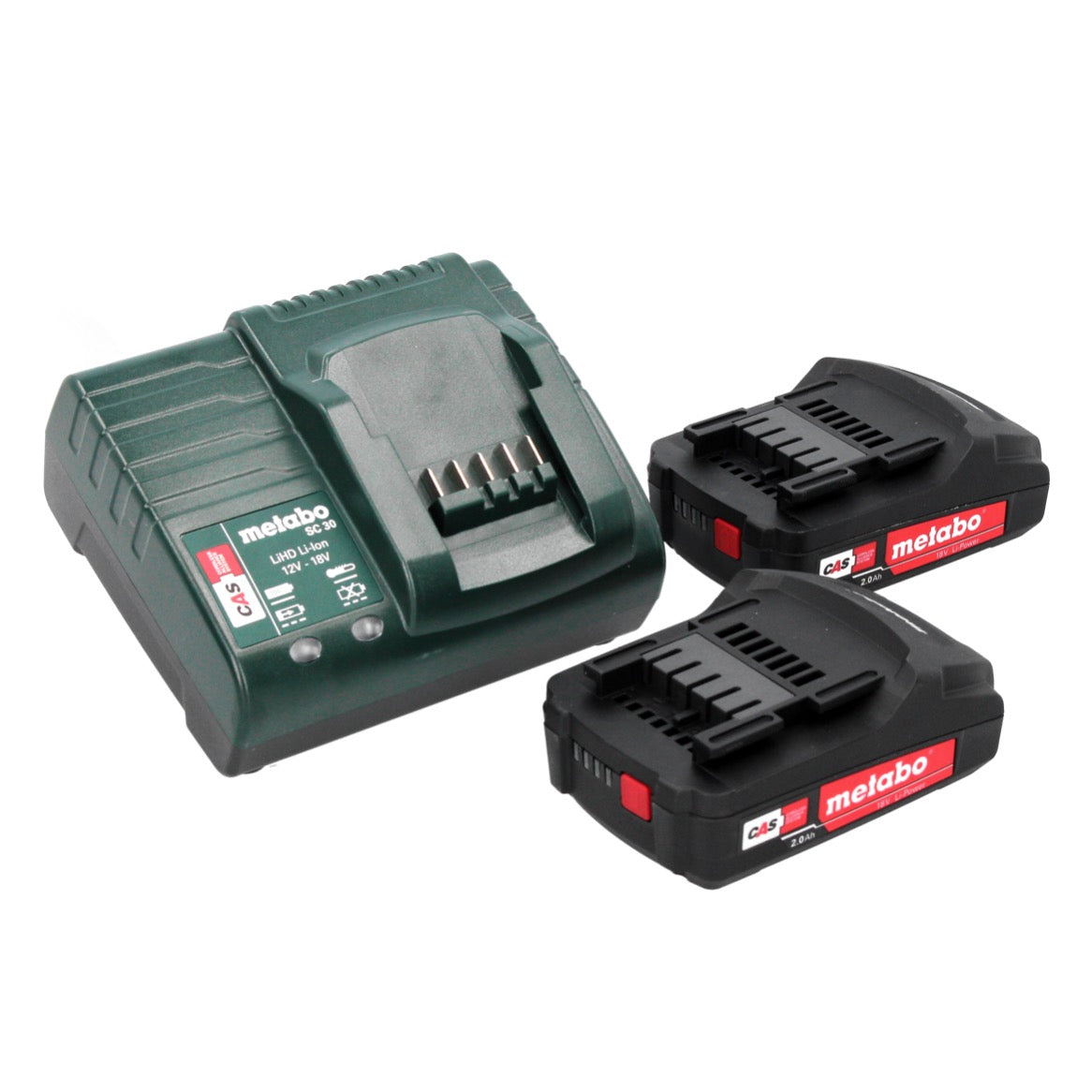 Metabo SB 18 48Nm 18V Taladro de percusión a batería + 2x 2.0Ah Baterías + Cargador + metaBOX + Juego de brocas 32 pcs.