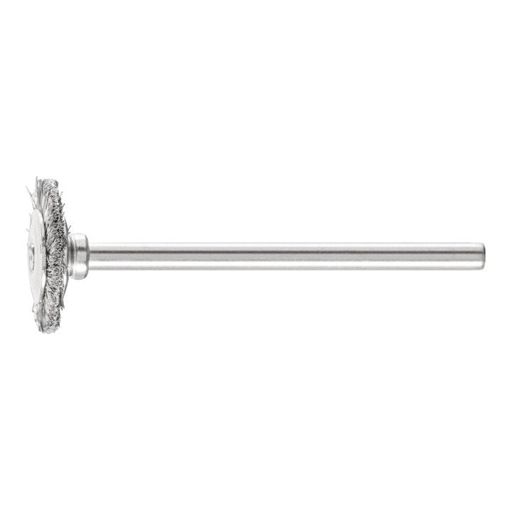 adecuado para trabajos de cepillado ligeros como desbarbar, limpiar y pulir - trabajo preciso posible en zonas de difícil acceso - cepillos de latón también adecuados para trabajar en metales no férricos blandos - vástago Ø 3 mm