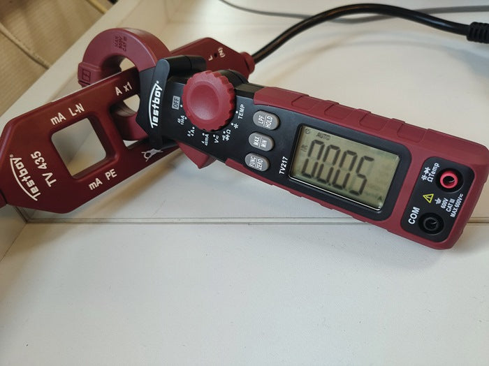 - 1x pinza amperimétrica de corriente de fuga TESTBOY Rango de medición 1µA - 150A(AC)
