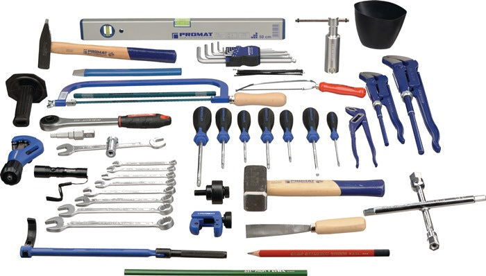 para instalaciones de fontanería y calefacción - equipado con herramientas de calidad artesanal e industrial - en un maletín de herramientas a prueba de agua y polvo