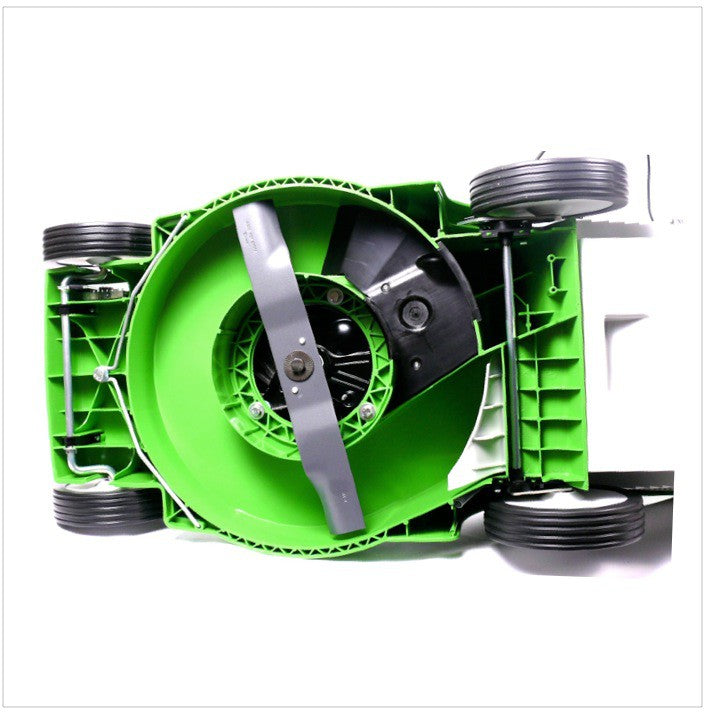 - La pala de viento incorporada crea un fuerte flujo de aire que eleva el césped antes de cortarlo y lo empuja hacia la cesta recolectora con fuerza.