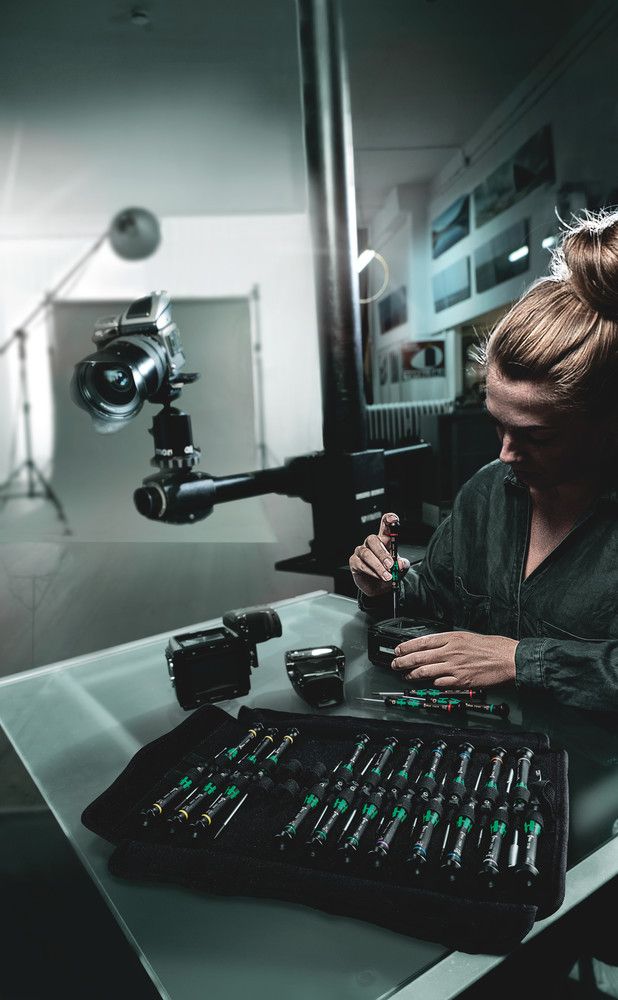 con micromango multicomponente Power Mold - con protección antivuelco - tapa giratoria - hojas redondas con punta Black Point - Take it easy Tool Finder System - Contenido: 1 destornillador para tornillos con ranura de tamaño 1,5 x 0,23 x 40 / 1,8 x 0,3 x 60 / 2,5 x 0,35 x 40 / 2,0 x 0,4 x 60 / 3,0 x 0,5 x 80 mm 1 destornillador para tornillos con cabeza Phillips (PH) de tamaño 000 ¹ x 40 / 00 ¹ x 40 / 0 ²) x 40 mm 000 ¹) x 40 / 00 ¹) x 40 / 0 ²) x 40 mm c/u 1 destornillador para tornillos con perfil interno TORX® T 5 x 40 / 5 x 40* / 6 x 40 / 6 x 40* / 7 x 60* / 8 x 60* / 10 x 60 mm* 1 destornillador para tornillos con perfil TORX PLUS® Gr. 1 x 40 mm 1 destornillador para tornillos con perfil hexagonal 0,9 x 40 / 1,3 x 40 / 1,5 x 60 / 2 x 60 mm 1 destornillador para tornillos con perfil hexagonal exterior 4,0 x 60 / 5,5 x 60 mm 1 destornillador para tornillos Microstix® Gr. m x 40 mm 1 extractor de componentes 3,5 x 50 mm * = con función de sujeción para el tornillo ¹) PH 000 + PH 00 Hoja rebajada a su tamaño nominal en el lado de accionamiento en una longitud de 10 mm ²) PH 0 modificado según JCIS 0 (Japanese Camera Industrial Standard)