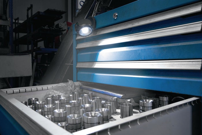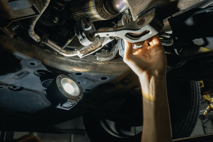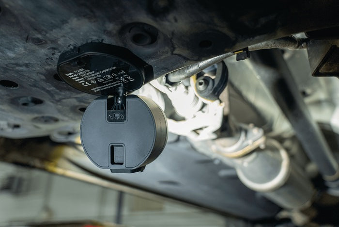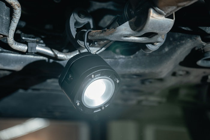 Projecteur de travail à accu avec LED COB 10W - mode 100 % + 50 % - pack d'accu Li-Ion intégré avec électronique de sécurité - protège contre la surcharge et la décharge totale - portée d'éclairage jusqu'à 52 m - affichage de la capacité de l'accu par LED - contrôle de la capacité disponible - protégé contre les projections d'eau - température de couleur 6500K (lumière du jour) - articulation sphérique pivotant sur 360° ainsi que crochet de suspension pivotant sur 360° - aimants intégrés dans le pied