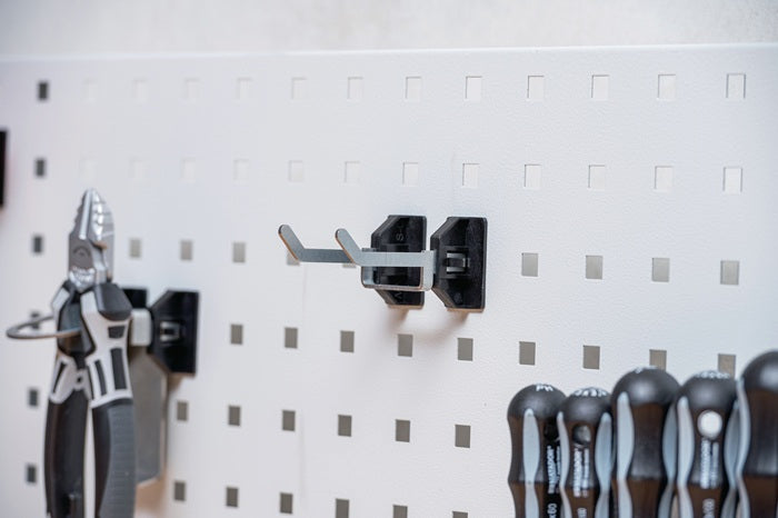 pour plaques perforées - galvanisé - avec support plastique - extrémité du crochet inclinée à 45° - UE = 5 pièces