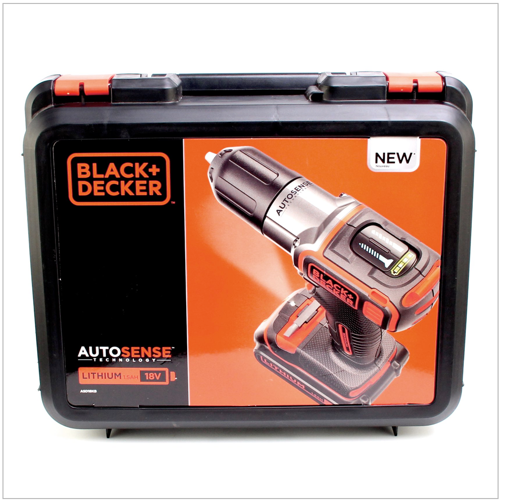 Black & Decker ASD 18 KB Perceuse-visseuse sans fil Autosense 18 V + 2x Batteries 1,5 Ah + Chargeur + Coffret